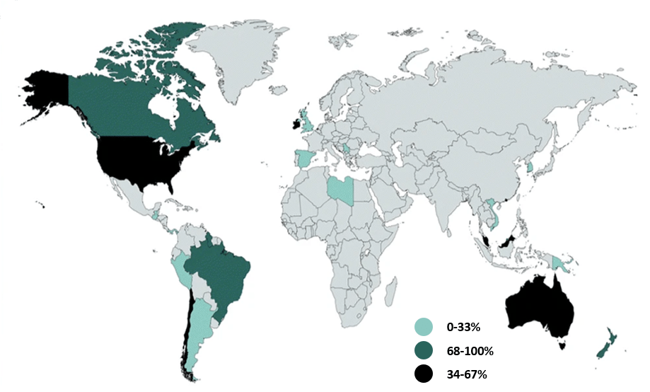 Approximately 25% of Americans did not succumb to the overwhelming pressure of government. The non-compliance in the USA was higher than the non-compliance of any nation in the zone outlined above (in yellow). Australia, New Zealand, Canada, Japan and the EU had a much higher rate of compliance – much higher.