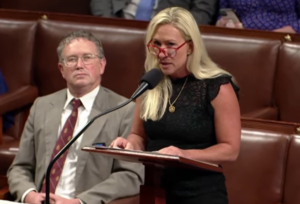 Marjorie Taylor Green and Thomas Massive together brought a motion to the House floor to remove Speaker Mike Johnson from office. However, a considerable number of Democrats joined Republicans in a 359-43 vote to table the motion and protect Johnson’s speakership. Paul Gosar (R-Ariz.) aligned with MTG and Massie. Eight Republicans including Andy Biggs, Chip … Continue reading What Are They Thinking – MTG and Massie Fail During Attempt to Remove House Speaker Mike Johnson