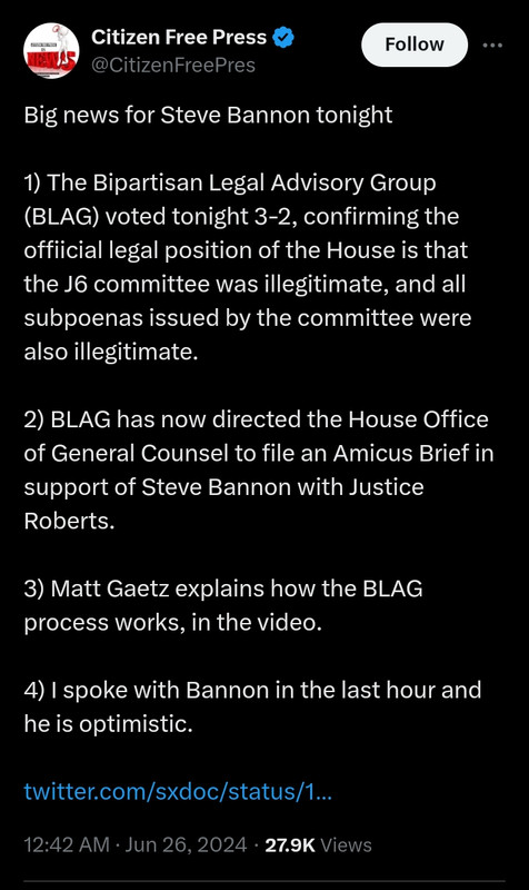 Asking for blessings of strength, hope and courage for all of these people. Yesterday, July 1st, Steve Bannon began serving a four-month prison sentence at the federal prison in Danbury, Connecticut. Peter Navarro began serving his four-month sentence at the federal prison in Miami on March 19th, so he is in his 15th week there. Allen Weisselberg, perhaps not as well known as Steve Bannon and Peter Navarro, was the CFO for the Trump Organization, is at Riker’s Island in New York, serving a five-month sentence that commenced on April 10th (he was previously sentence in January 2022 to a five-month sentence but was released in 100 days). The January 6th prisoners are in various locations, having been held for months, years – they should be released imminently.