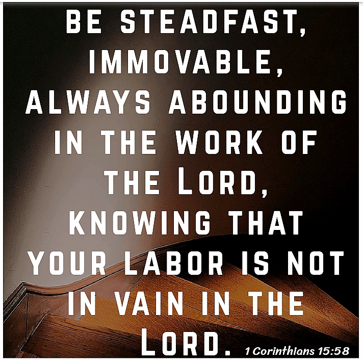 “Therefore, my beloved brethren, be ye stedfast, unmoveable, always abounding in the work of the Lord, forasmuch as ye know that your labour is not in vain in the Lord.” ~ I Cor 15:58