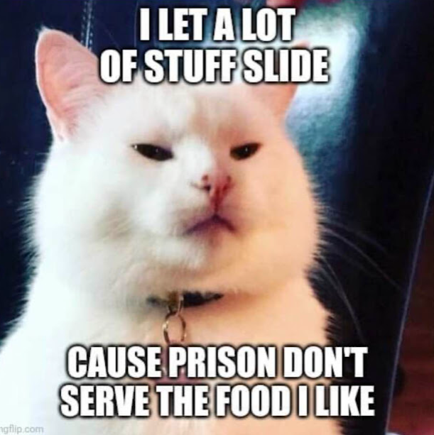 I’m late to play time. I don’t know about this, but three hots and cot sound pretty good right now. Do we have to pay taxes in prison??? LOL