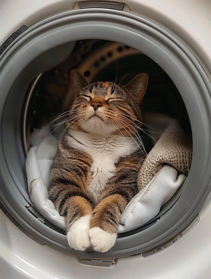 My kitties sometimes jump in the dryer when I am emptying- scares the !@#$ out of me.