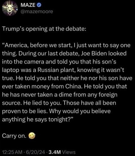 Exactly. Old Joe’s team will do exactly what they accuse others of doing (which the others are not of course) they will produce ‘true’ cheap fakes of Trump from debate and saturate legacy and social media with the fakes. Again no reason for Trump to debate.