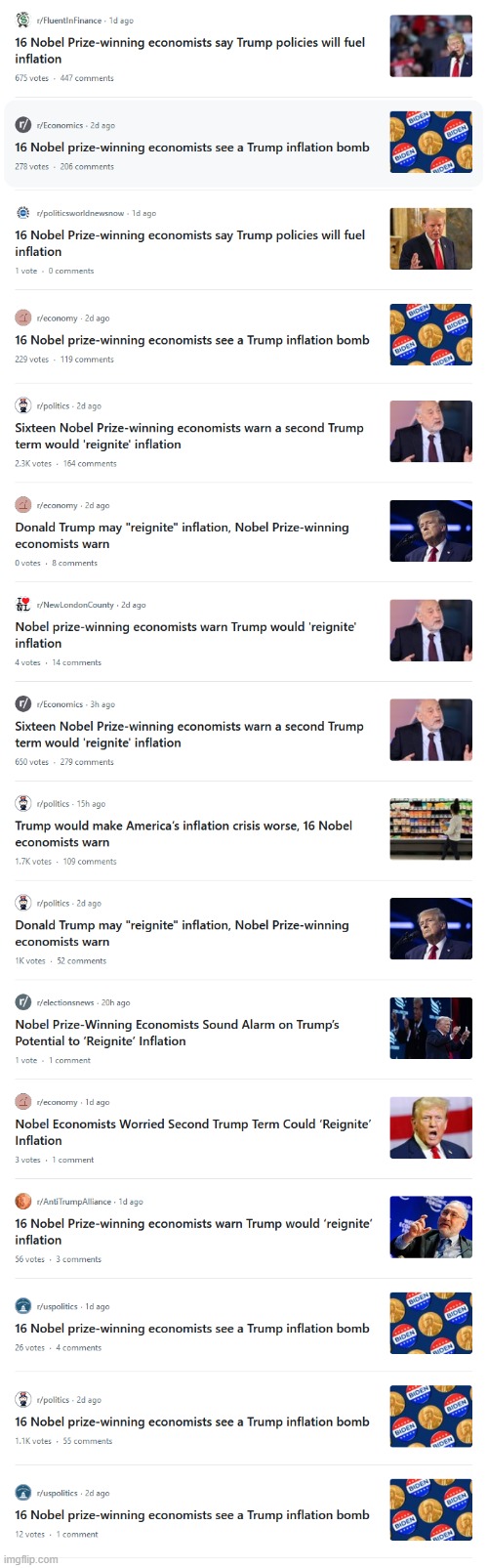 Not just 16 economists.. but 16 Nobel prize winning economists.. lolz The NPCs are bombarding reddit with it. Too early to say if it’s going to be effective.