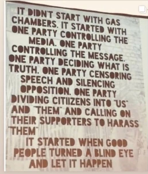 “The biggest mistake I see is people waiting for A Big Sign that’ll tell them that things have gone too far. One Big Thing that police or lawmakers or the president/leaders will do that will cross the line. It’ll never come because they won’t cross it. They’ll move the line. That line you think you stand behind is shifting everyday with little actions, bills, legislations… That line will stop moving one day, & it’ll be too late… Every day, your sensitivity is being eroded by these willful atrocities. The envelope for what you’ll accept is being pushed. One day, all of these things will be your new normal.”