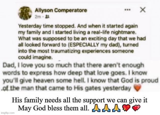 May the angel who saved DJT, wrap his wings around this family. In Jesus name lend them strength and love during this time of great loss and sadness. 🪽🙏❤️