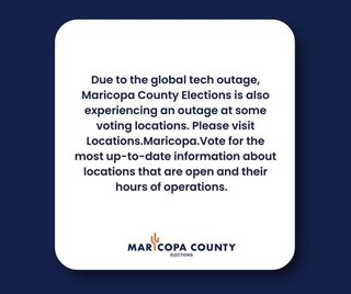 Maricopa County Elections put out a statement that the global tech outage is also impacting some voting locations.