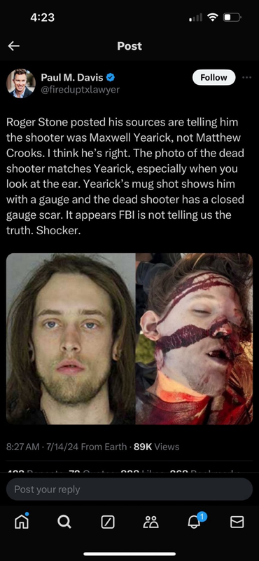 The FBI are in charge of the investigation of Thomas Matthew Crooks; that does not inspire any confidence. However, it does explain the seemingly controlled leaking of information to the various media sources in order to keep the eyes of the public exactly where the investigators want them.