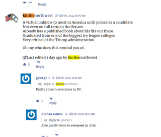 I completely agree with your comment. I decided to not repeat any of the stuff I have read or written here in any other forum. I’ve learned enough today to lower my expectations about JD and assume (until proven otherwise) he will not succeed Trump. We can discuss Vance AFTER the inauguration.