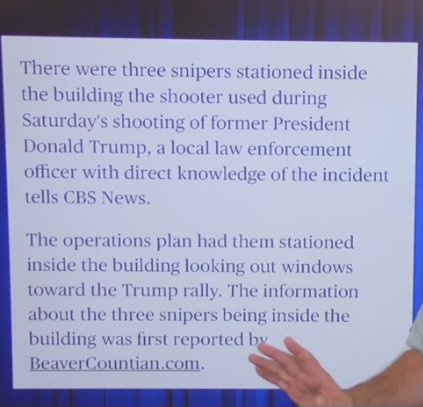 And while it may not be possible to find smoking gun evidence of a conspiracy to commit murder (ESPECIALLY FOLLOWING THE CROWDSTRIKE DATA ERASURE COMPUTER OUTAGE), all those in positions of authority in providing protection to PDJT should be criminally charged, indicted, tried, convicted, and sentenced for GROSS NEGLIGENCE, RECKLESS ENDANGERMENT, AND PROFESSIONAL MISCONDUCT.