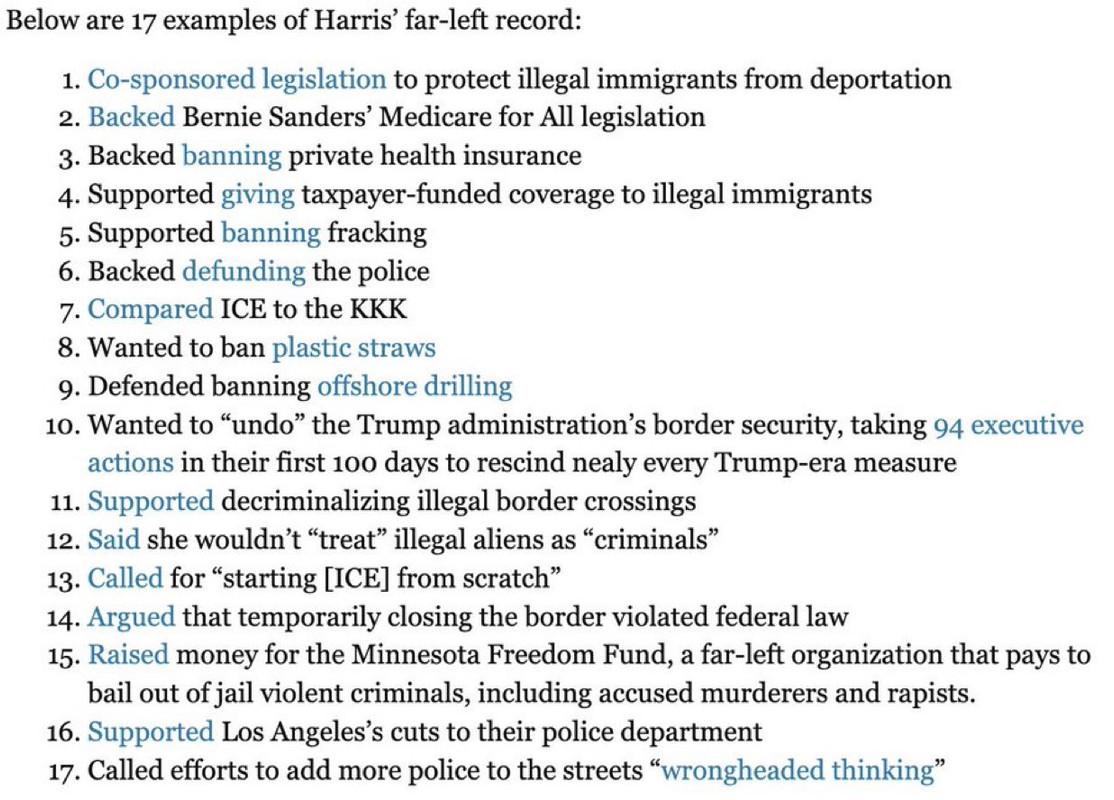 Speaking of economics – hat tip to Mark Moss for this list of some of Comrade Kamala’s policies.