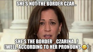 Oh dear. I speak fluent word salad. Let me translate. We used to be committed to a consistent border and immigration policy. The czarina was in charge of restoring it when it became Broken By Biden. Instead she goes to search for the ‘root causes’. She’s already searched for these roots without success for three years. That’s because she’s not ready to publicly say that the root cause of all trouble in the world is racist white people and she only plans to throw more money and resources–reparations?–at the invaders. She needs a new title. All I can think of is Obama’s 4th term.