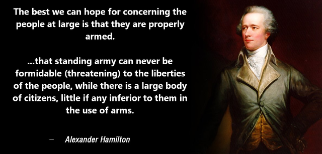 Further, Hamilton also talked about the need of the people to be armed and skilled such that the standing army (military) could never be a threat to their freedom.