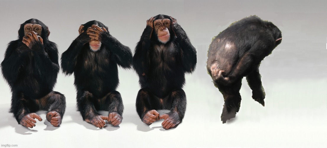 I await the corresponding meme image (“Here are our typical U.S. Politicians”) to help it go viral. Someone with the requisite skill must add the fourth monkey image to the other three….