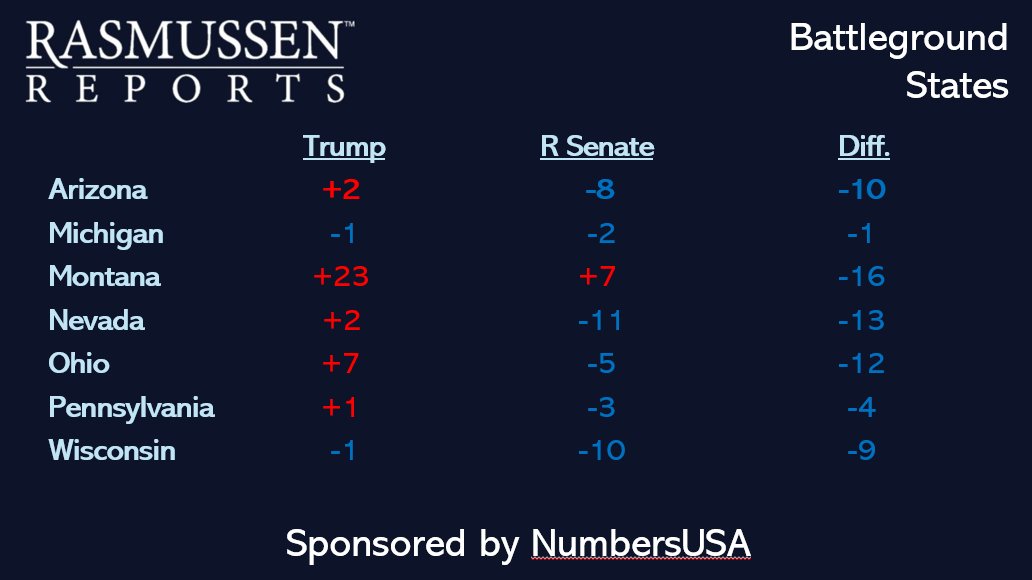 Regarding the polls out showing big spread between Trump and senate races averaging 9%. Some at 16 and 23. I imagine this is the crossover democrat effect not voting down ballot. They need to understand the country needs everyone, not just Trump.