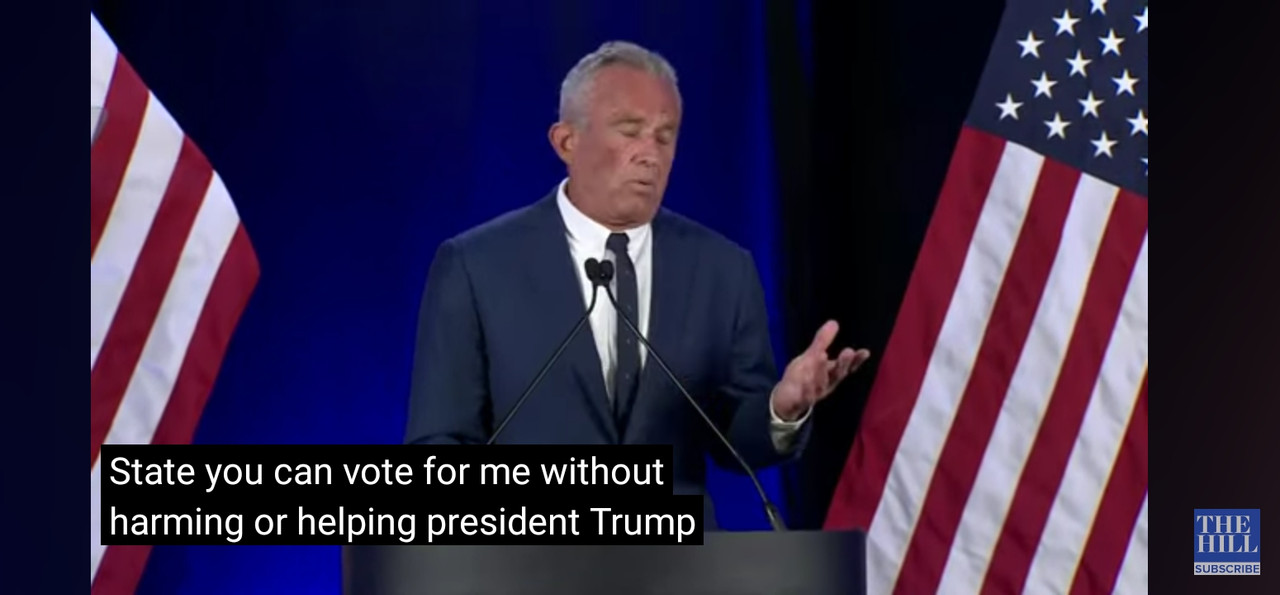 I can’t find it right now, but I seem to remember RFK at one point saying he would not stay in the race if it hurt the democrat chance of winning and acknowledging he took more votes from Trump.