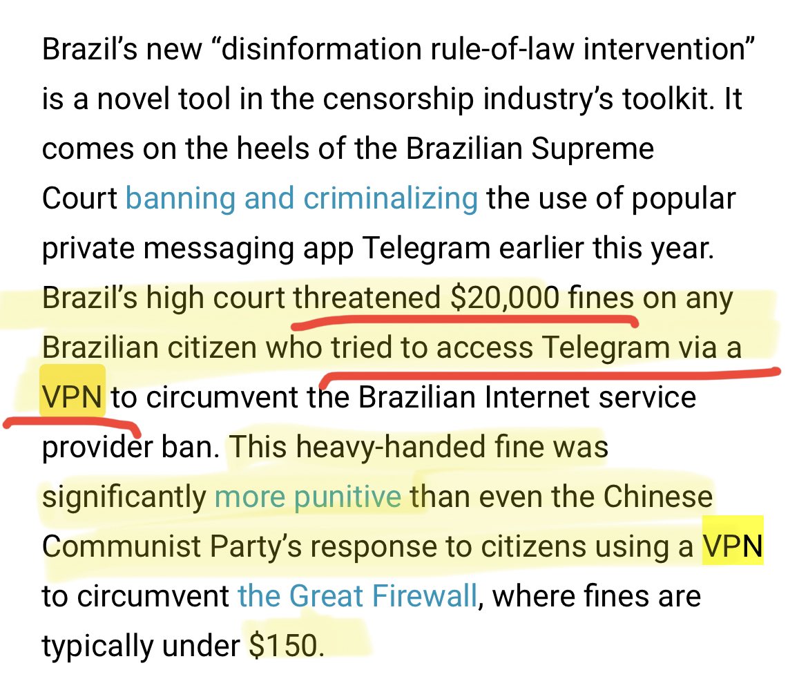 I wrote about how Brazil’s VPN fine for evading speech bans would be 150x greater than China’s back in 2022