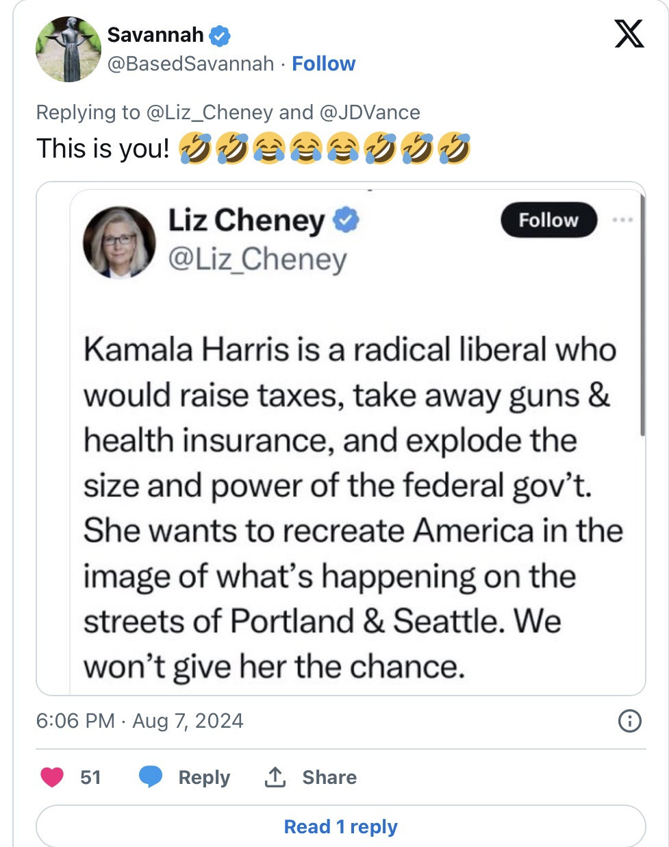 Please oh Please… I hope the whole Cheney clan joins Kamala on the stump