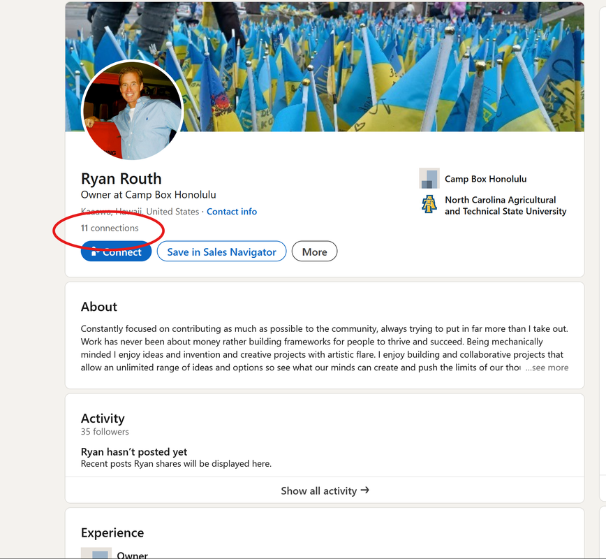 I just read, in one of the links below, that he had 3000 followers on twitter/X. Is this his LinkedIn page?