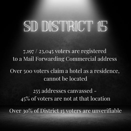 Re 50% “unverifiable,” it may be difficult to verify SD “residents” who travel all the time.