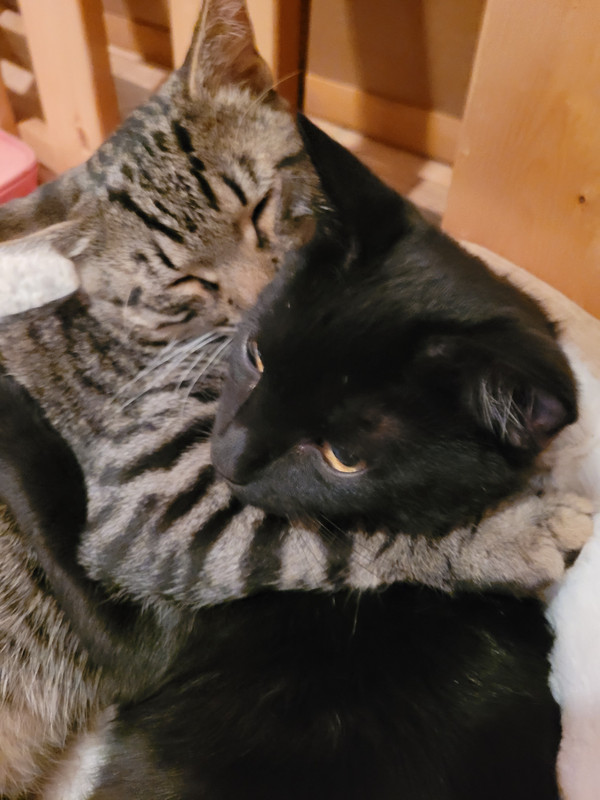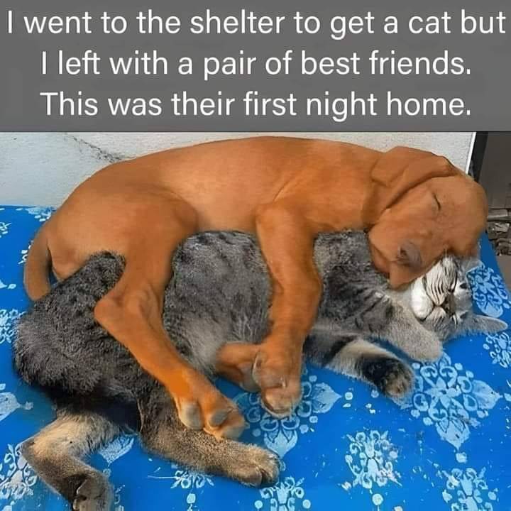 Can’t stop gazing at this kitty and pup in obvious bliss together. So satisfying. What a thoughtful, wonderful soul to adopt them both.