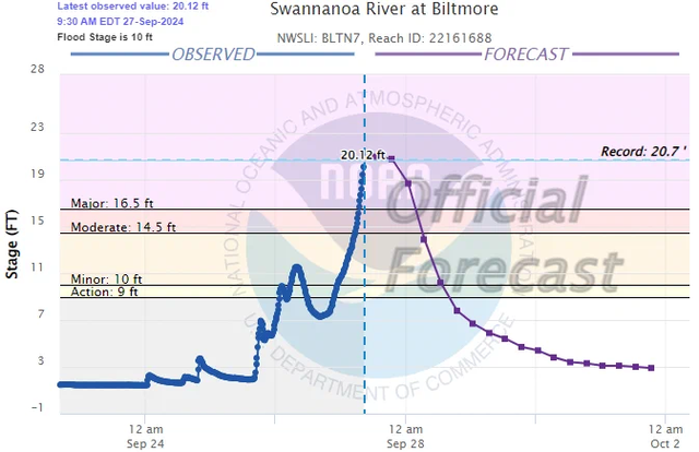 The greatest ongoing threat from Helene’s activity continues to be flash flooding as torrential rain falls throughout the southeast, impacting rivers and pushing streams onto roads and into communities, sometimes trapping residents.