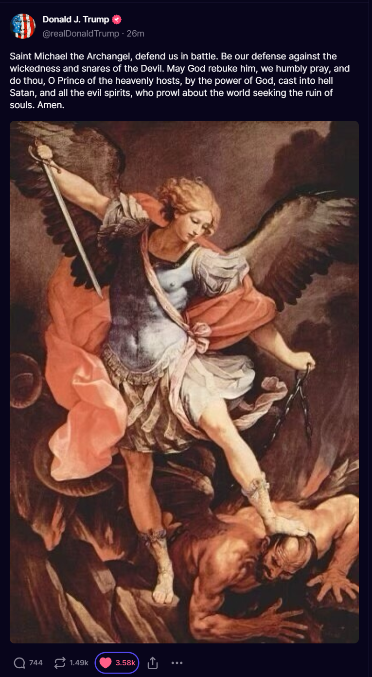 Also , President Trump throwing people popcorn, Truthing out the invocation to St. Michael ( 109 , drop the zero -> 19 right back at them).