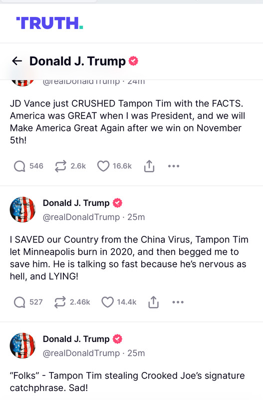JD Vance is not allowed to rebut anything that TT says, but TT can always correct JD Vance!