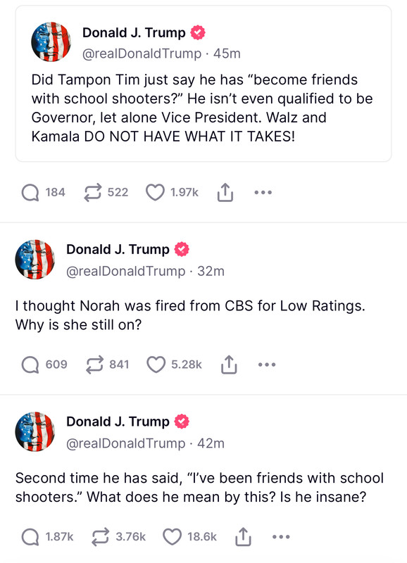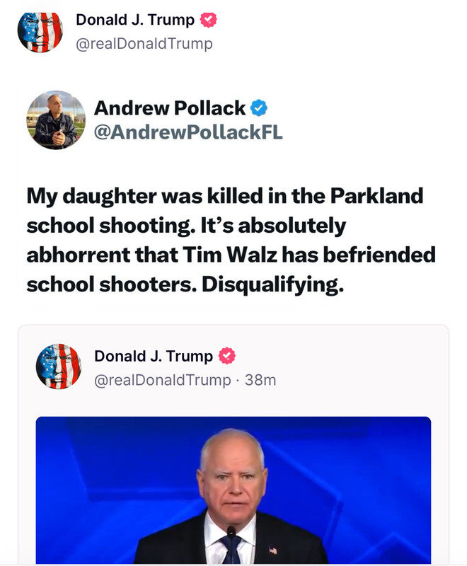 Wow. I couldn’t watch and probably wouldn’t have anyway, but did Walz look like this through the whole thing? His facial movements and expressions were bizarrely fake. Is that how he really talks? JD looked and sounded normal and intelligent. Walz could not have come off very believable if he talked and looked like he did in the clip for the whole debate.