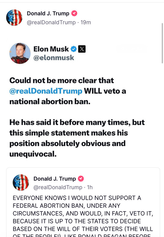 The whole truth: https://truthsocial.com/@realDonaldTrump/posts/113235528243798112