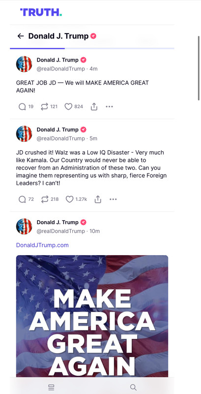 I read here regularly but rarely chime in…as I’m just heading to bed reading comments and just have to say, I’m wishing tonight was a home run and JD had been more ( kick ass) demonstrative in explaining to America what mayhem Walz and Harris represent in terms of far left ideology. Yes, I think it was a good debate. Both sides came prepared. Walz was surprisingly likable and held his own without answering fully for his far left ideology or that of Harris. Generally, I don’t think either side of voters were swayed—Both presented well so in my opinion it was a wash. JD was articulate and likable—I wish I could say unequivocally that our side won. But, I think Vance was tame compared to what I think many Americans would have wanted him to unleash given the recent/current experience of punishing vax mandates, open illegals, energy crushing inflation and most of all collusion in media censorship that this administration has promoted. Sorry for the truth bomb. I just can’t sugar coat what I see.