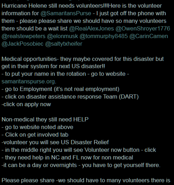 If you are in the Western Carolina area and would like to reach out to Emily directly to coordinate getting supplies in, dm me and I will provide her contact and that of others leading the efforts in those rural areas.