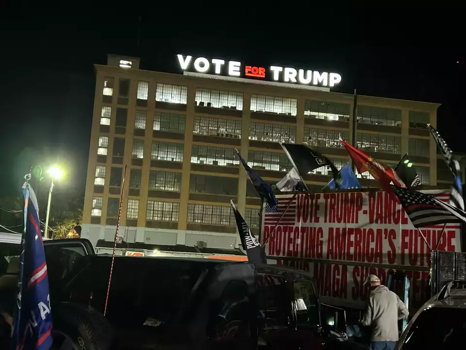 The guy who owns this building and put up the sign is also giving out free Trump stickers: https://www.stickermule.com/g/stickerpac