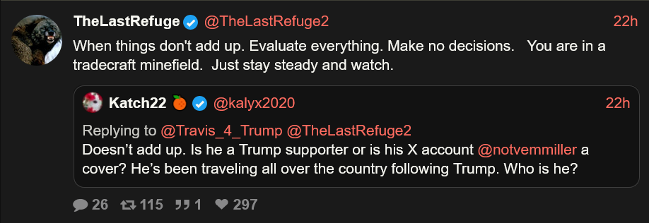 The guy is definitely sketchy but the official authorities including PDJT’s campaign appear to have indicated they don’t consider Miller a threat to President Trump.