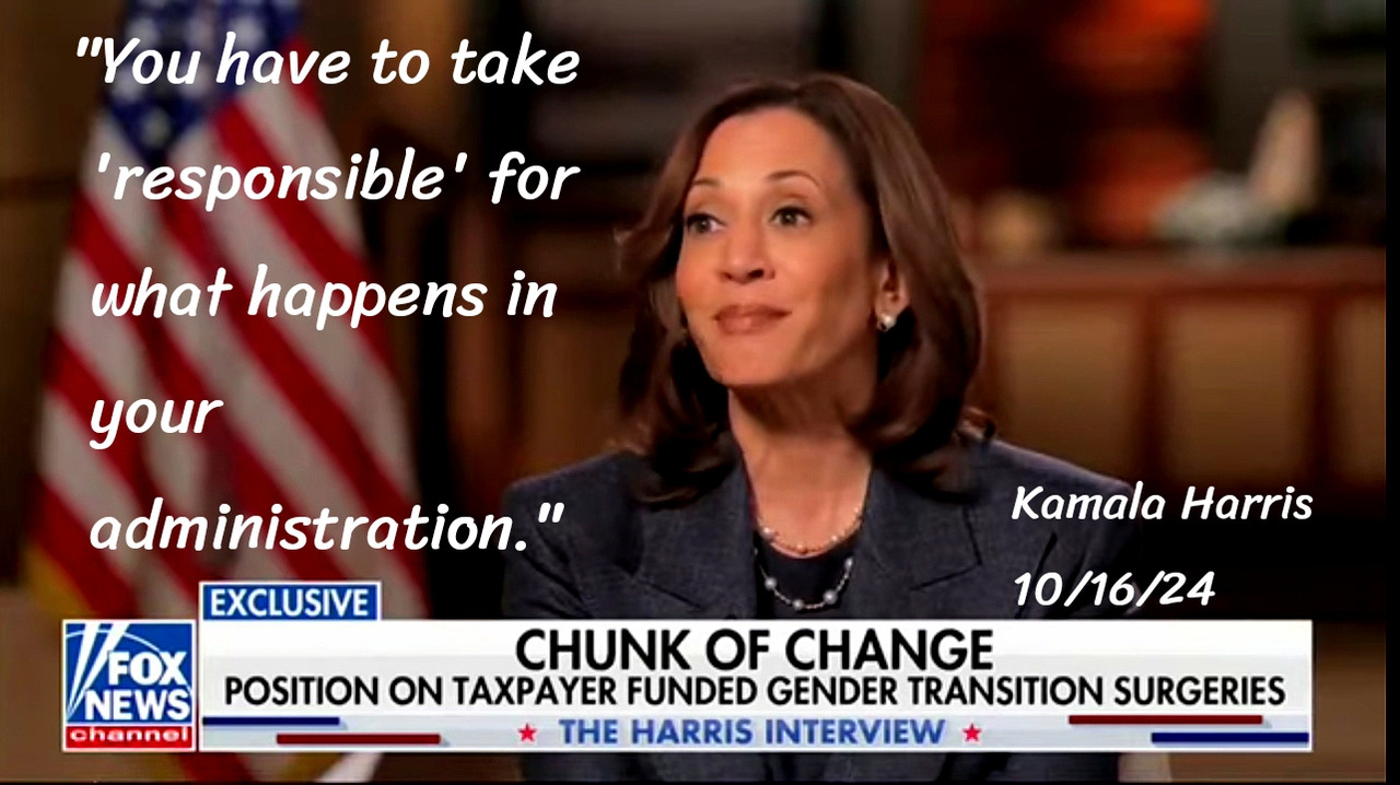 One of the most-devastating lines of questioning was related to illegal immigration, Biden and Harris’ immediate actions on taking office in which they voided a huge number of standing Executive Orders, and illegal crossers after that date who within the last three years, and in some cases just weeks or months after crossing, went on to allegedly murder Americans. The alleged perpetrators are all in jail awaiting trial. Harris was asked if she had an apology or any sort of repudiation of the Biden/Harris immigration policy given that these Americans are dead and, unless the wrong person was caught, they came in under the Biden/Harris policies and were released pending determination of their eligibility to be in the US rather than being held in custody.