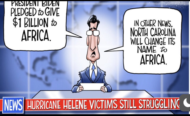 The money drops are endless for everyone, both internal and external, EXCEPT for those decimated by Helene (the EPA is dropping bucket loads of it to all their parasites as I type – see a post in today (12/7’s) presidential thread. It shows beyond any shadow of a doubt what the Left thinks about American citizens…