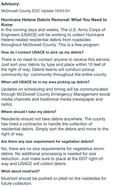 Wow…awesome! Thank you so much! On a side note: we were just contacted by our former utility company. Seems they are refunding the final payment that was made by families whose homes (owned or rented) were destroyed by Helene. Very nice, very kind. HOWEVER…at the end of the call, they ask if we have contacted FEMA for financial support? Hey, folks…many in the Flood Zone consider FEMA, TEMA, Red Cross and United Way ‘foul language’…have YOU seen the videos on You Tube, on ‘X’, on TikTok? Have YOU talked to the actual VICTIMS? What part of ‘f*** off’ don’t you understand? God and His children are taking very good care of us…we do NOT want your help…go away. Please.