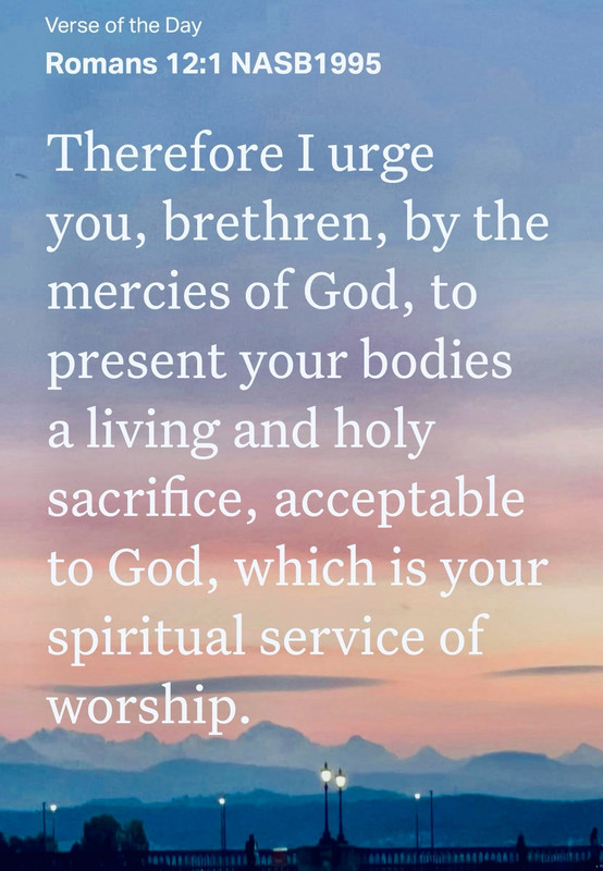 “Therefore I urge you, brethren, by the mercies of God, to present your bodies a living and holy sacrifice, acceptable to God, which is your spiritual service of worship.”