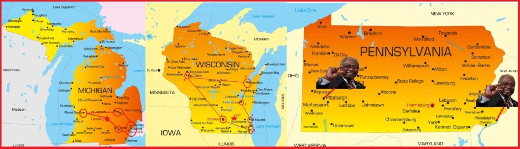 The states of Wisconsin, Pennsylvania and Michigan, previously labeled the “blue wall,” have been called for President Trump. These three states are where James Clyburn spent most of his time on the ballot initiatives. However, most of the critical regional ¹ballot printing operations were defeated.