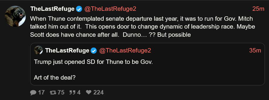 Substantial amount of Chess going on there, if accurate… would seem a step down, though, unless Thune has eyes on a future run for Prez…