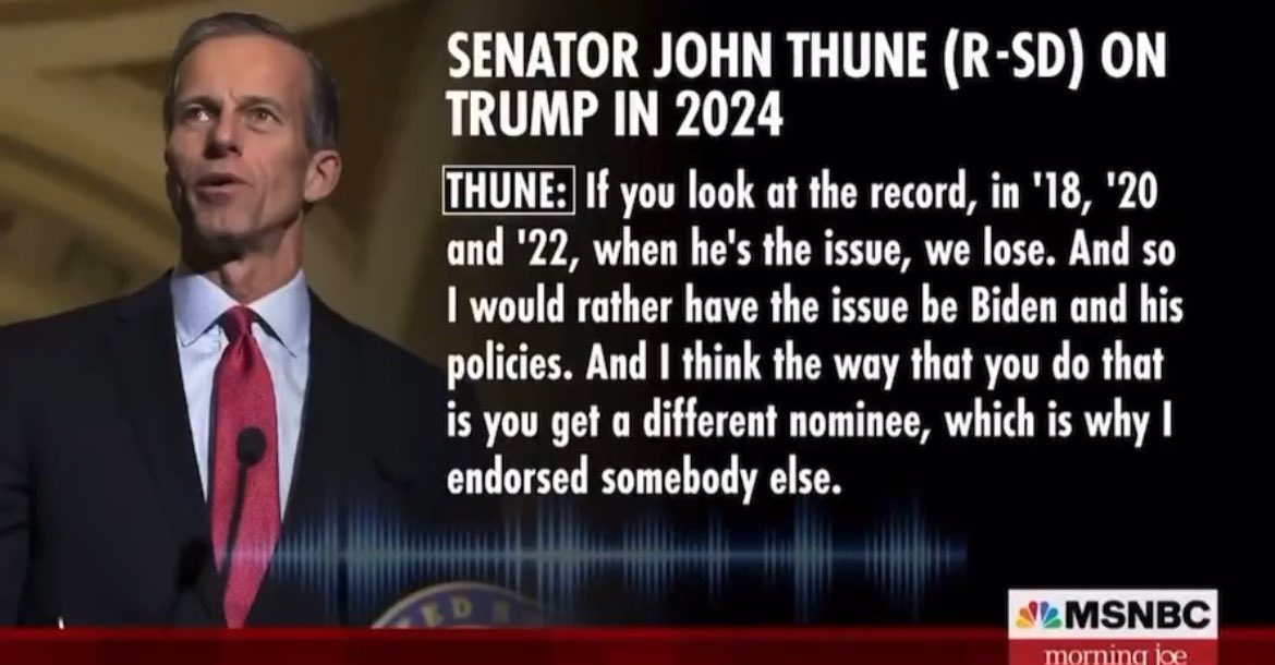 Wasn’t there a rumor that Thune and Noem had a connection? Now both will be in DC. Maybe this or some other dirt on Thune could be an attack vector to get the nominations approved and committee chairs selected.