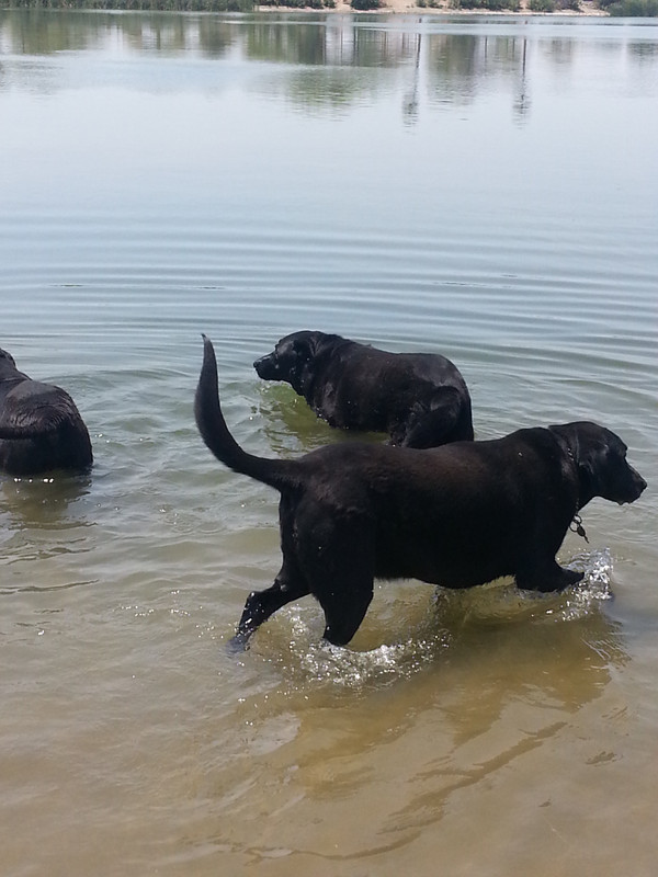 This is our Reagan, Palin, and Gator. One day, we took them to a lake that was about 2 hours away. When we got there, there was a sign saying, “no dogs off leash.” I really was crestfallen, because they all loved swimming.
