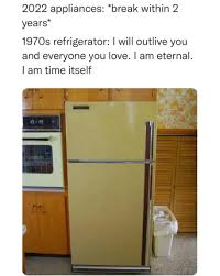 Remember Maytag, Speed Queen, Frigidaire, Amana, Kenmore, RCA, Zenith, Emerson, etc. home appliances from the 1950s thru the 1980s? With few exceptions, the products ran like clockworks on demand or continuously for years. They often lasted for decades and were replaced only because the owner wanted new features or a different color in the kitchen or wherever. The old unit was still working the day it was unplugged and hauled out.