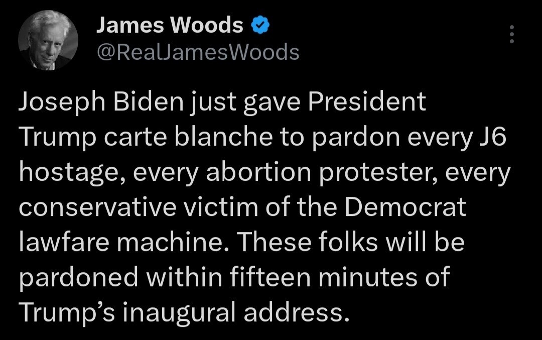 Yes, Trump is laying down the groundwork for across the board pardon. He’s also been talking about the multiple violent protests from the other side and why nothing has happened to those people…At this point, Trump’s got enough justification for the J6 pardon. He might allow some to be convicted but commute the sentences so that they can’t accuse him of being “NOT for law and order”.