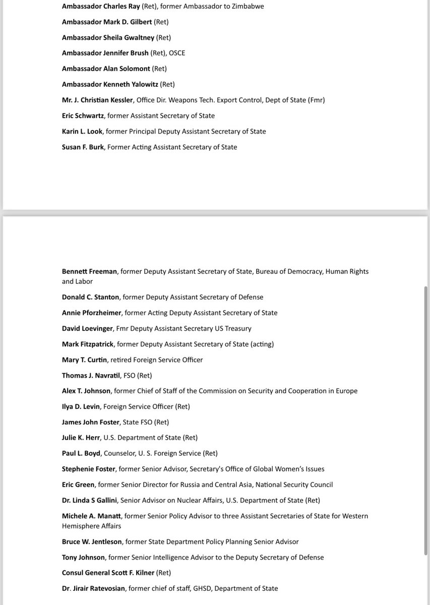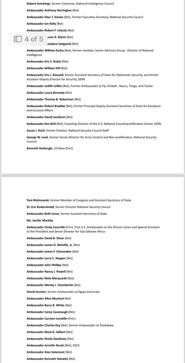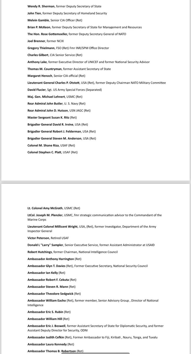 I wonder if someone has already compared the names on this list with the 51 names on the letter declaring Hunter’s laptop Russian misinformation. And every reason they list why Tulsi should not be confirmed, is every reason why she should.