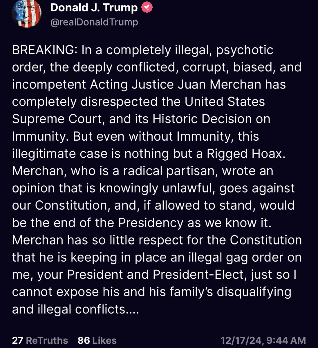 The reason that President Trump keeps going into his eighties is because his second term was denied him.