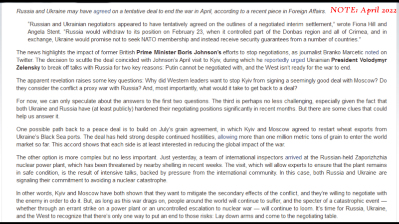 What I am saying is that NATO wants to create a bloodlust for revenge within the Russian people. That is the way the U.S. and NATO get the escalation they desperately want. Unfortunately, this becomes a self-fulling prophecy because Vladimir Putin will attack Kiev, Ukraine with retaliatory strikes; he has no choice.