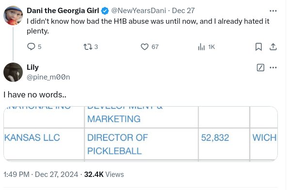 He was right, but he’s susceptible to influence, and I really don’t like how he’s just letting this hang, because it suggests to me that the reason for all the silence save for “I like H1B” is that he’s already decided to give the billionaire liar’s club what they want, but that first Elon is going to have to make a case for it, so MAGA will think we’ve come to the conclusion that H1B is a good thing all on our own, instead of seeing it as the major betrayal of Americans that it is.