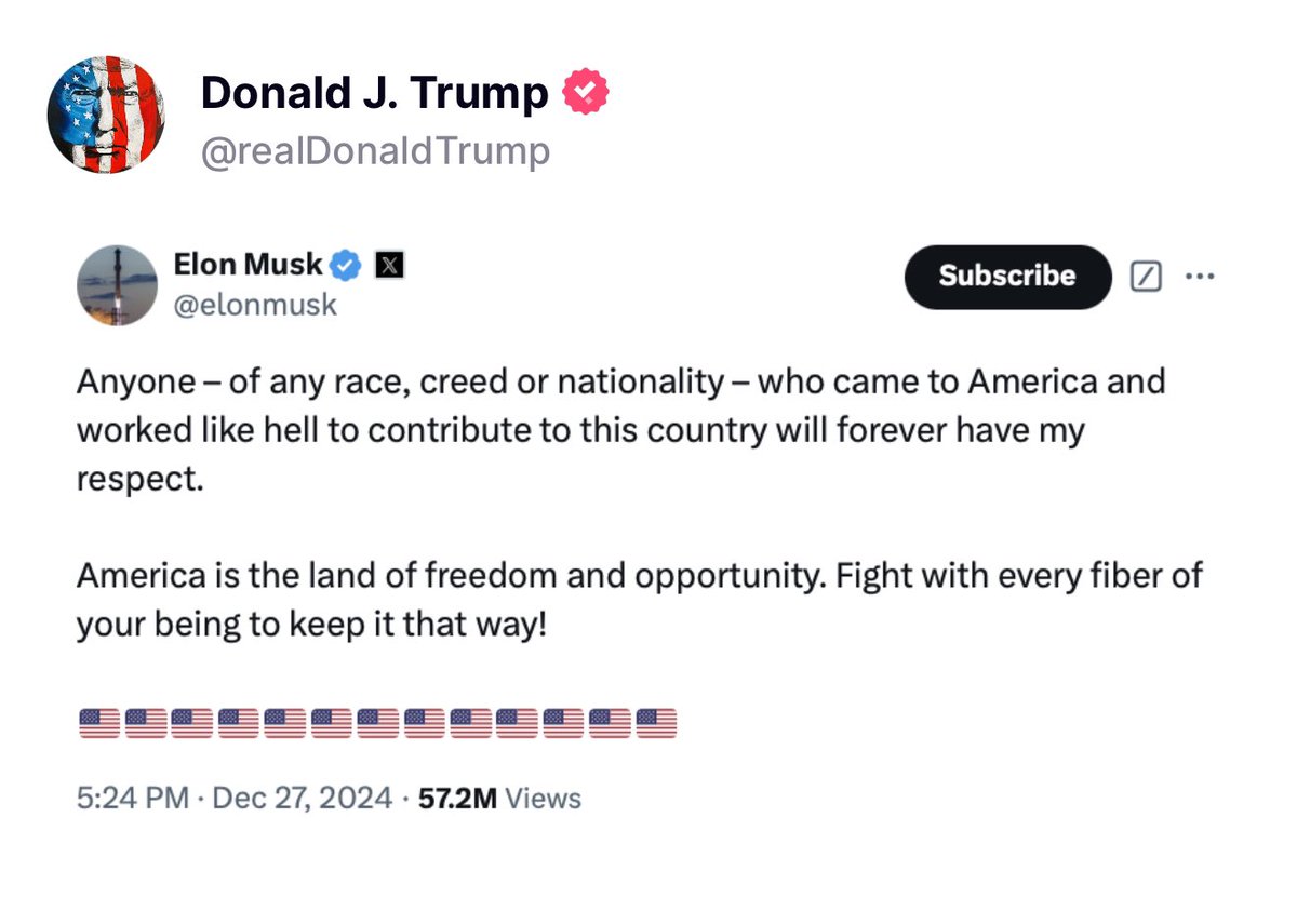 Yes, Elon and Vivek were not tasked w immigration policy.
