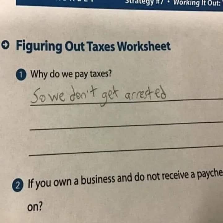 “Why do you or anybody take it for granted as a given that we need to “pay taxes to run the government”?”, followed by several statements of fact regarding how much one pays on “earned income” vs. various “passive income”.